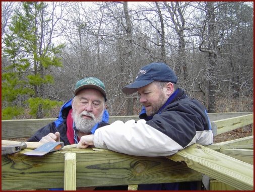 Dad & Chuck inspect the old support beams - just before we tore them down.