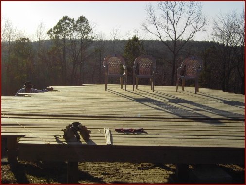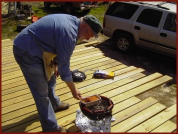chili). We ate them on the almost-completed deck. Dad and Richard & Byron Dowd ate hotdogs on