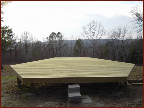 on concrete pads. We will place the concrete pads nearly level with the ground so they