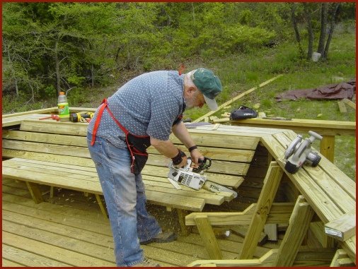 Over the years dad has become a master craftsman with the chainsaw. We don't need no stinkin'