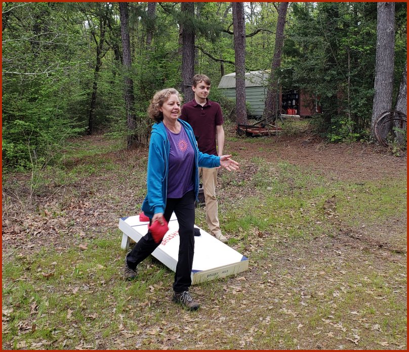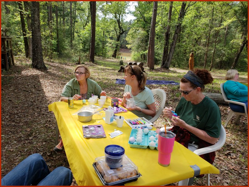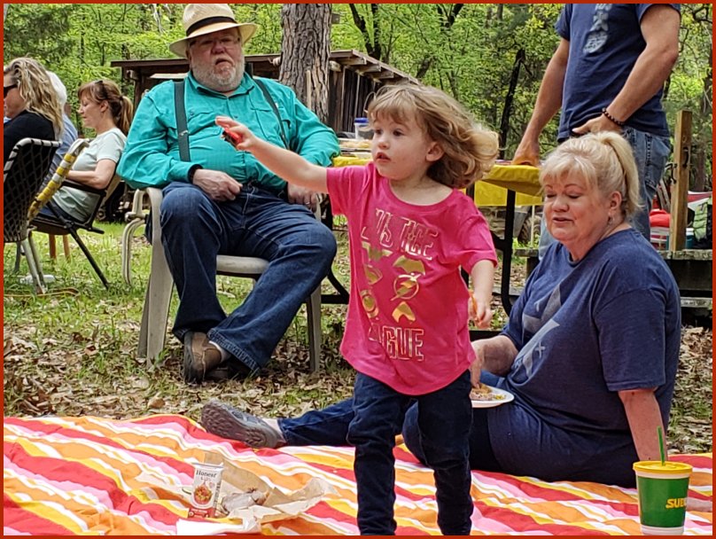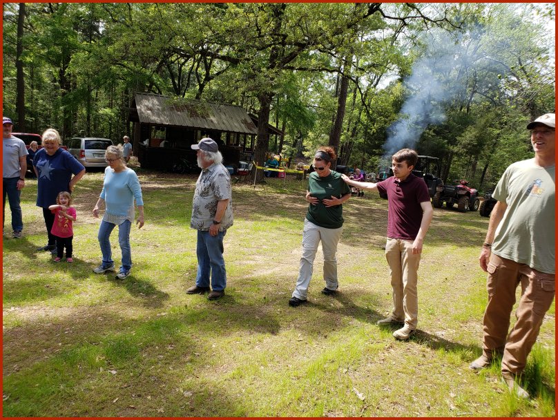 Around 30 people came out to enjoy Easter in the deep woods of East Texas. The weather was nice, Mykala nearly stepped on a copperhead (see picture below), and Jason & I won the Egg Toss!
