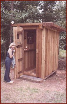 The Outhouse has a porclean potty in it. It's on a septic tank system.