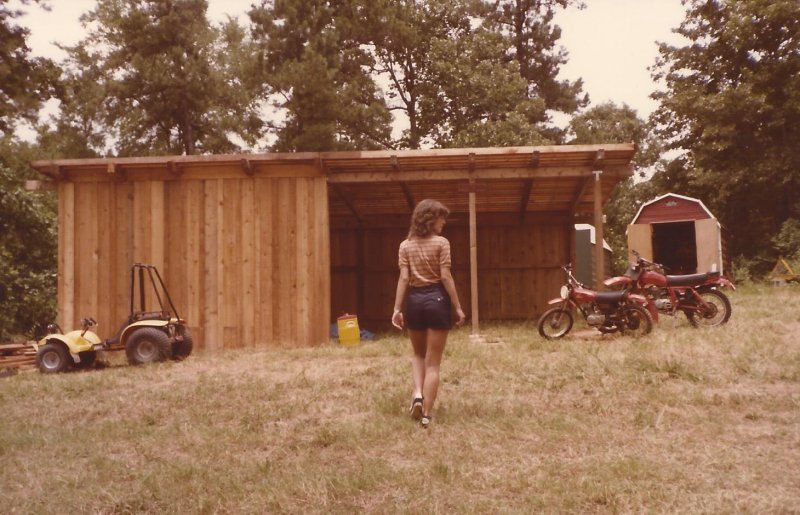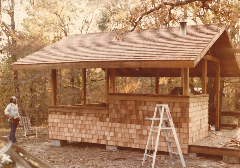 "The Kitchen" is the first structure we built on the land. That's Dad admiring his handy work back in 1979.