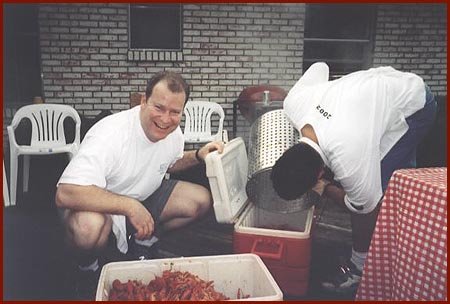 were in the process of filling a second ice chest full of cooked crawfish.