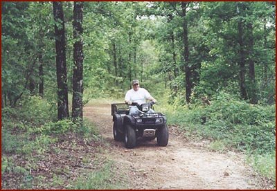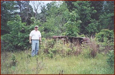 Neil Sanders riding on Dead Car trail and standing next to the "Dead Car".