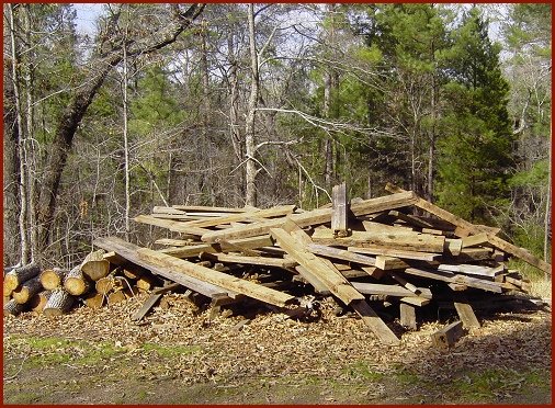 the old wood into the bed of our Jeep Scrambler and I drove it to the Compound area for use as