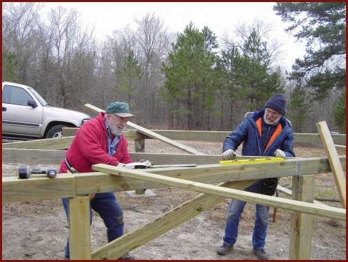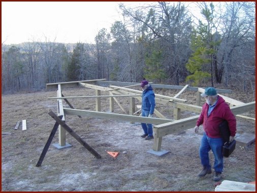 This is a shot of dad and Chuck positioning a floor support. We decided that the structure