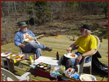 chili). We ate them on the almost-completed deck. Dad and Richard & Byron Dowd ate hotdogs on