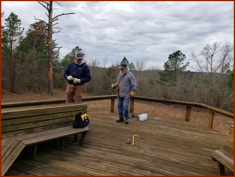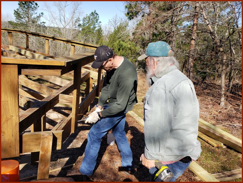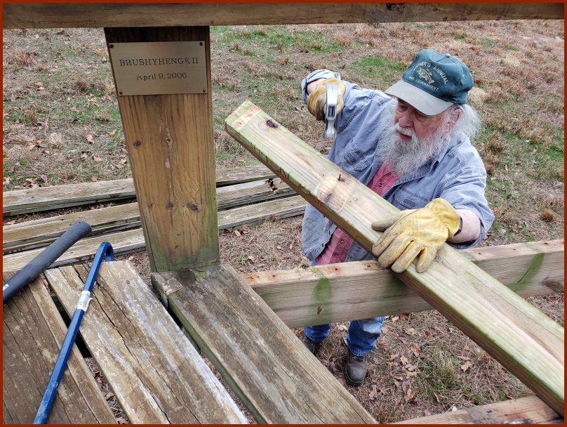 we didn't work too long on Brushyhenge this outing. We noticed that the top, flat boards of the railing that we had replaced
