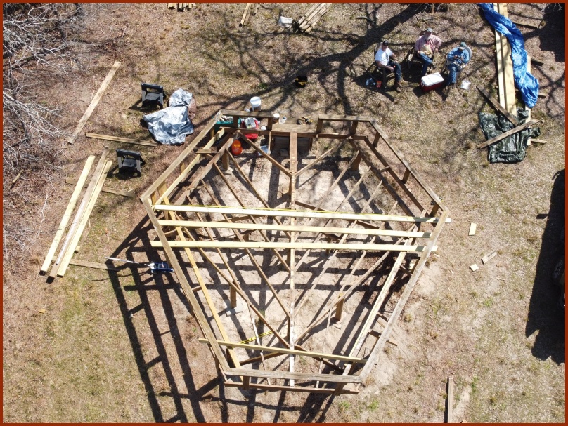 then we spent a lot of time trying to get the horizontal floor supports in the same plane. Over the past 16 years, Brushyhenge II has