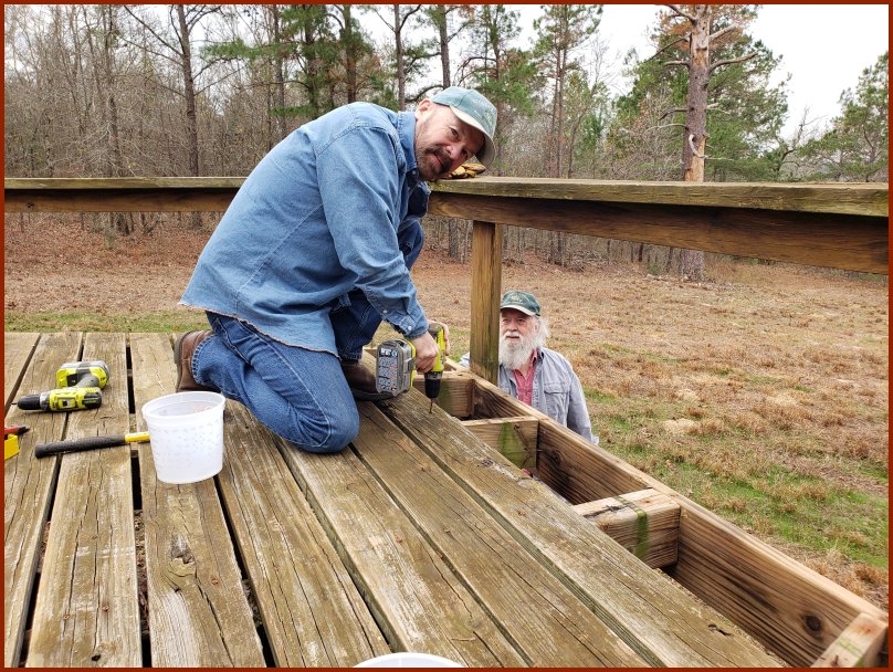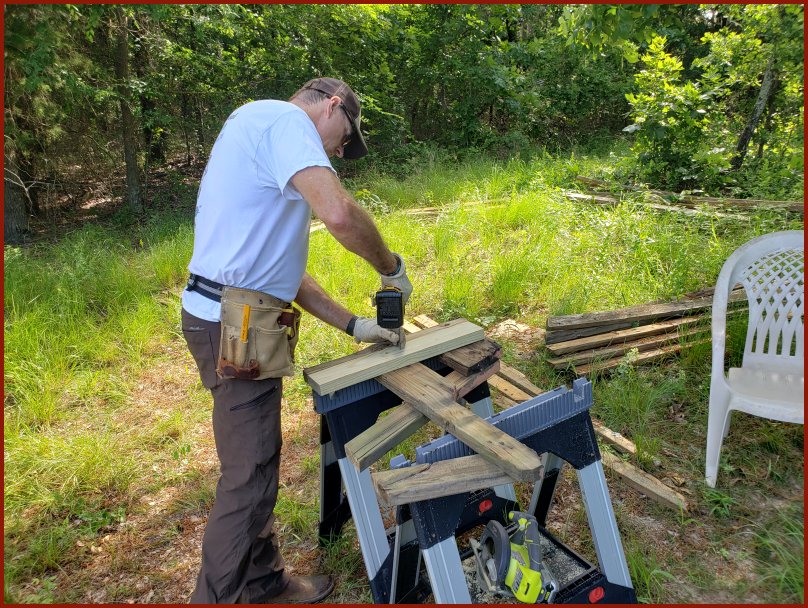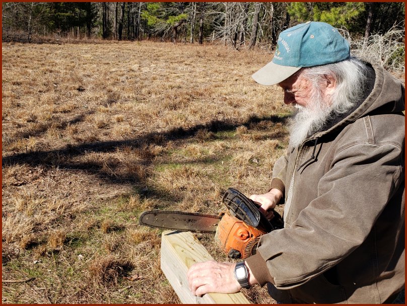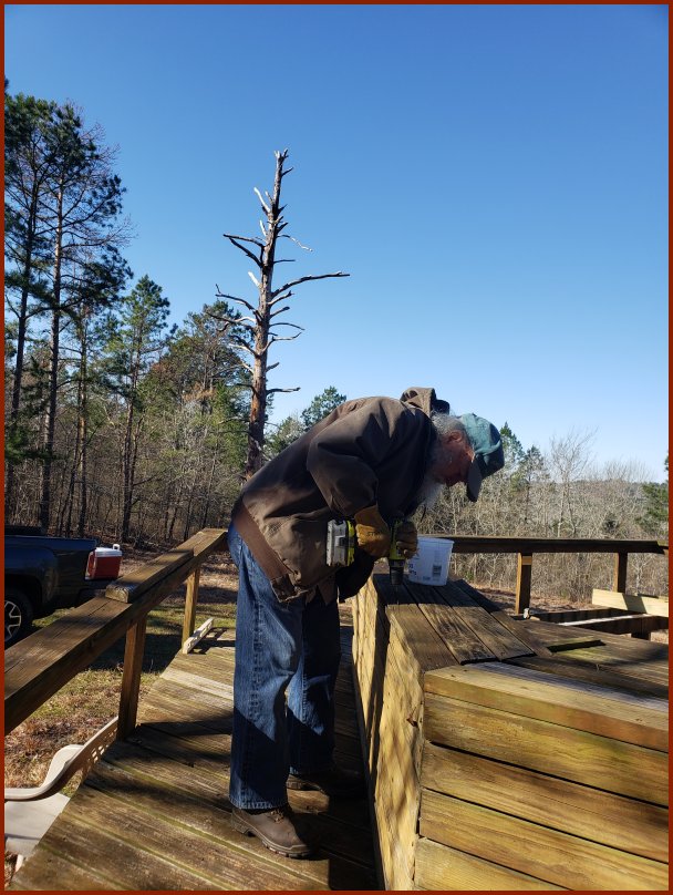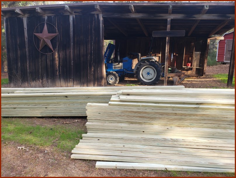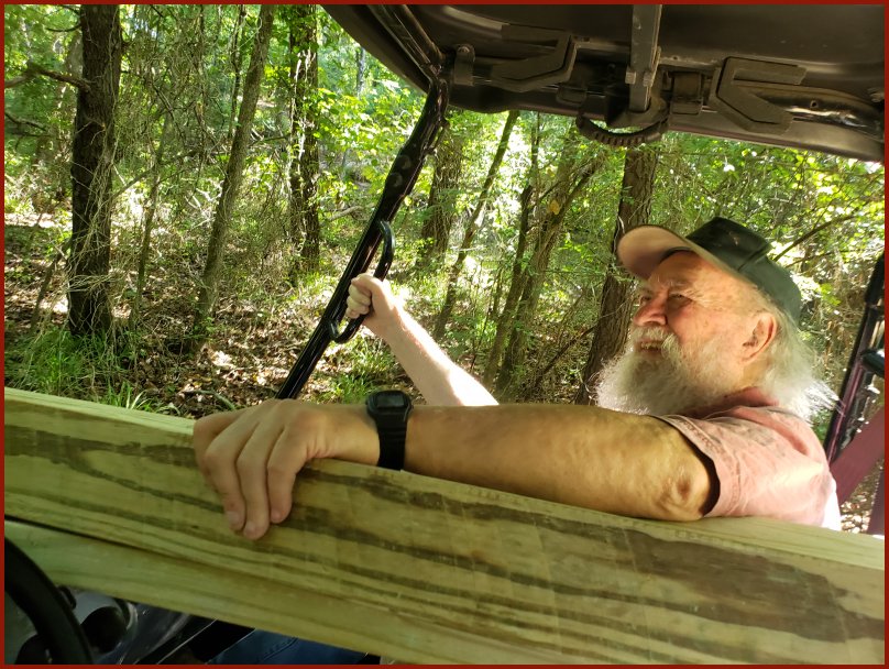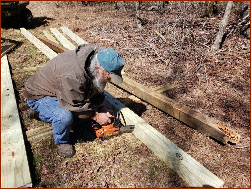 then. A few days before this trip, Smith Lumber met Dad at the land to deliver the wood. Today we put wood filler in several bad spots
