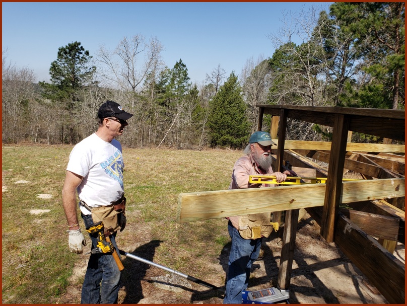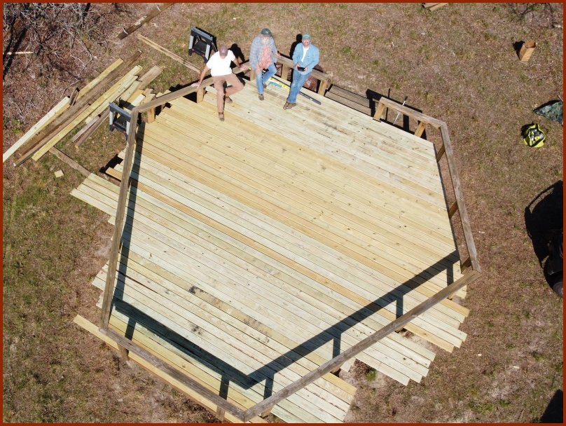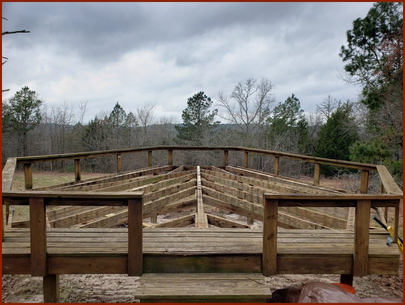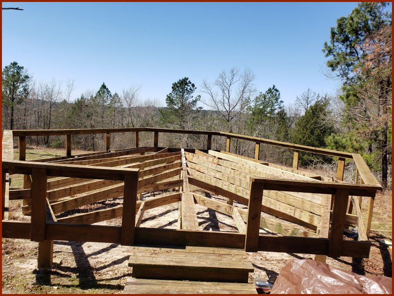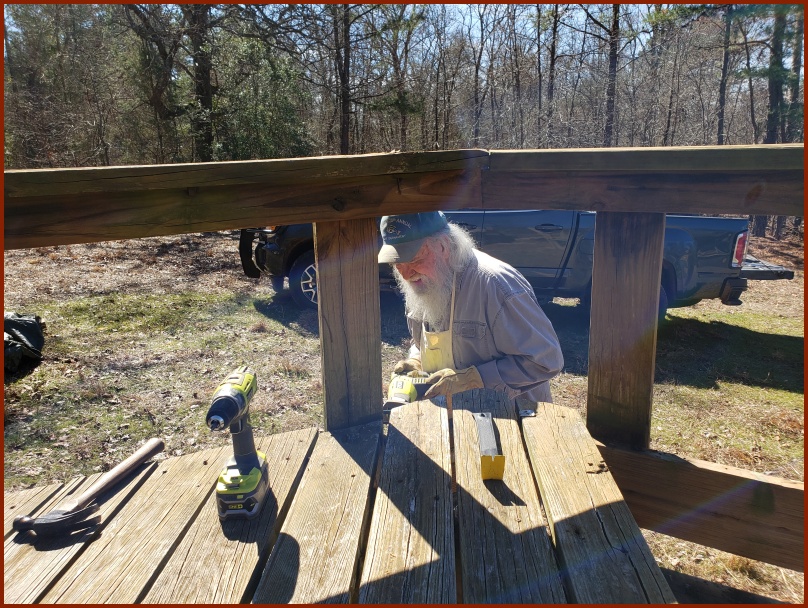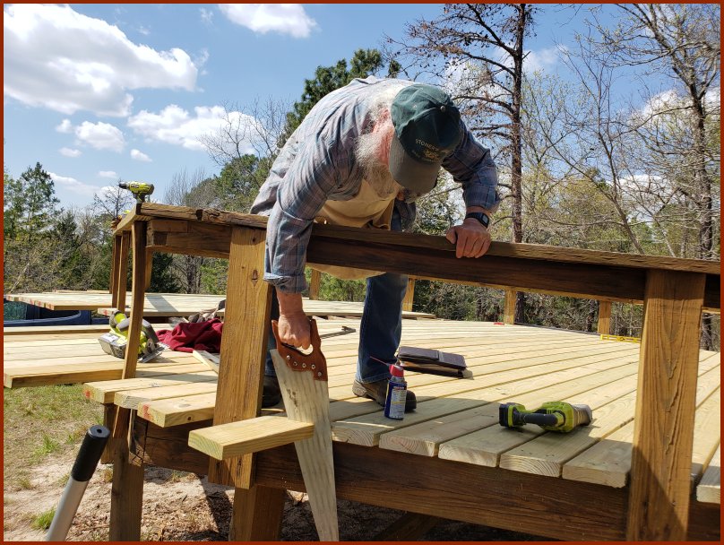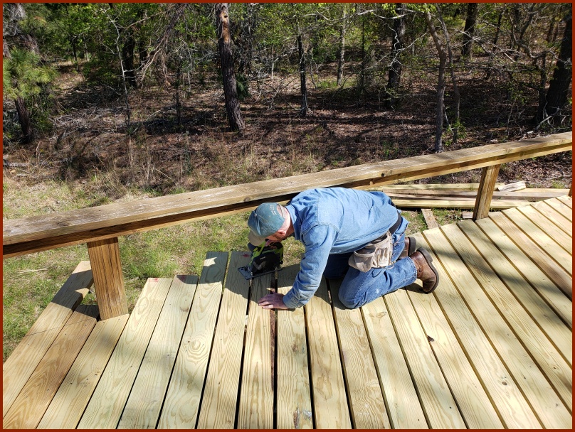 then. A few days before this trip, Smith Lumber met Dad at the land to deliver the wood. Today we put wood filler in several bad spots