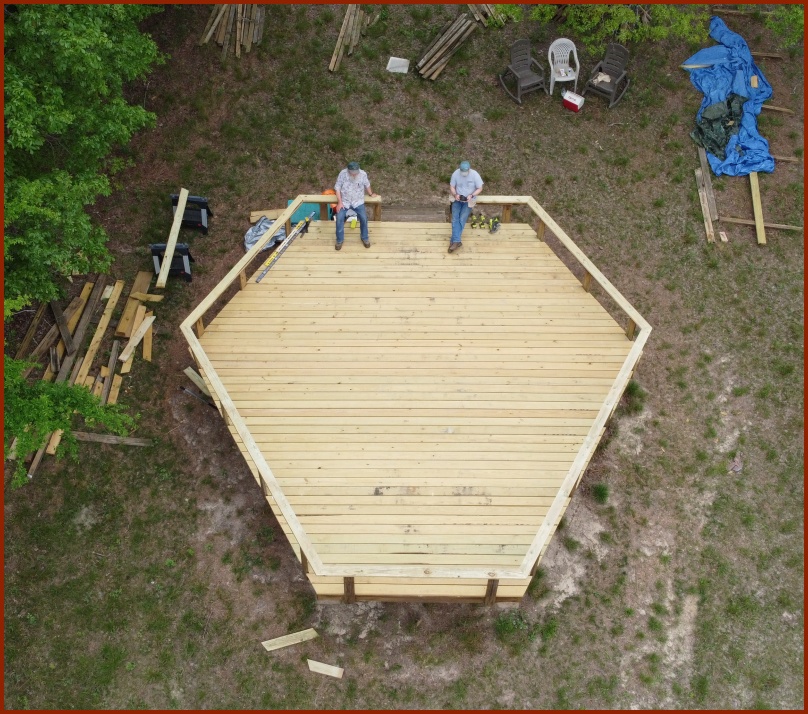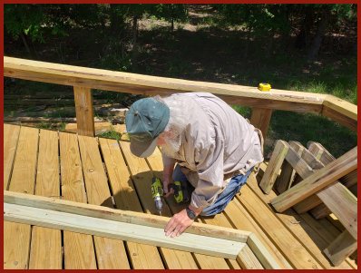 more "hangers" that connect the facer boards (which hold of the rail) to the floorboards. And as is the tradition after completing a deck at