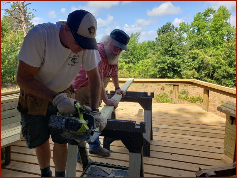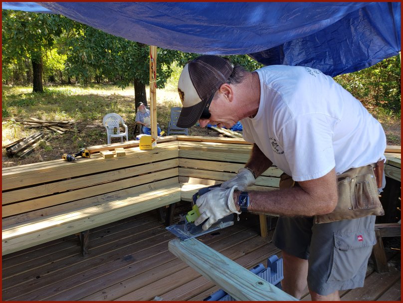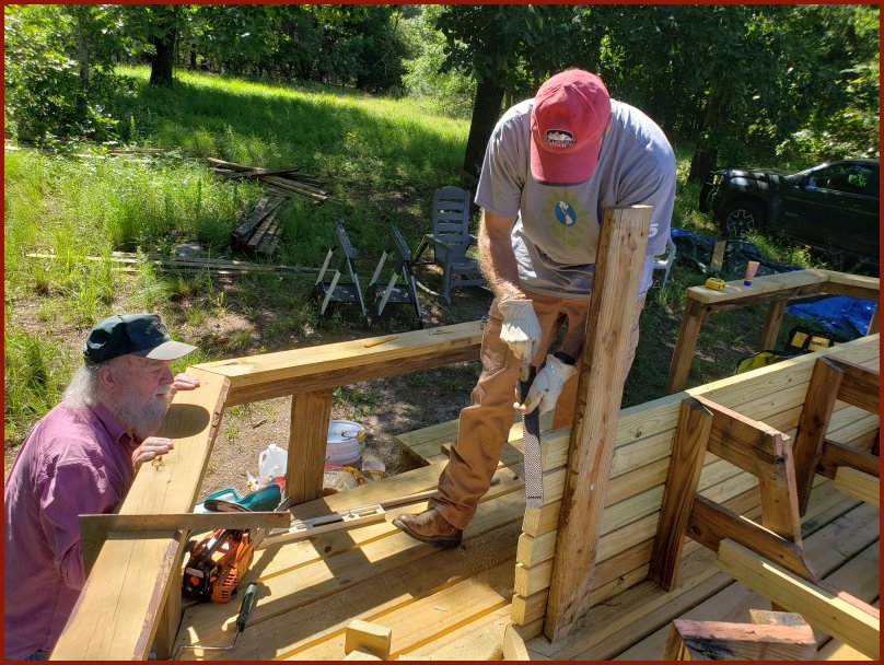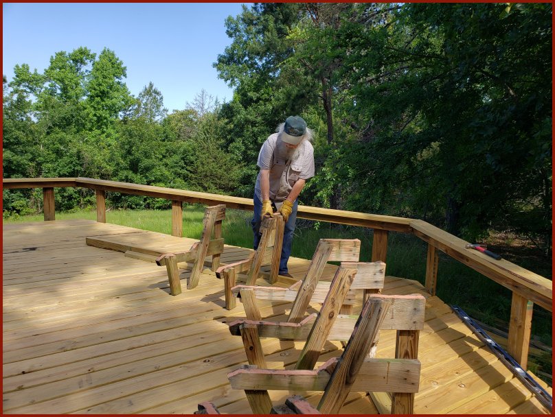 before leaving the land. Fun stuff. We installed the back boards on the two remaining bench sections, so now all