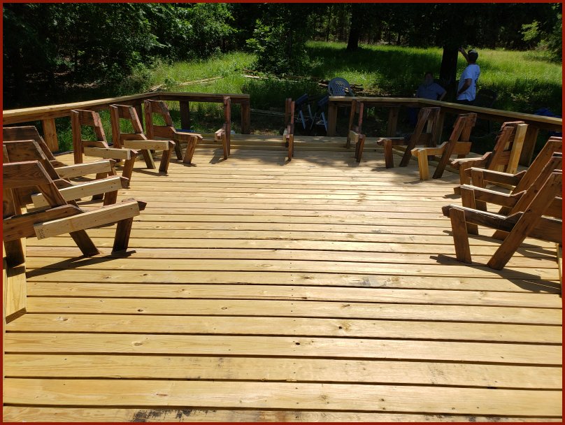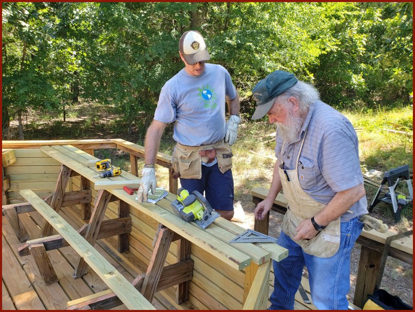 are still in good shape, so we will leave those in place. So we'll be replacing the floorboards, the benches, the steps, and the top