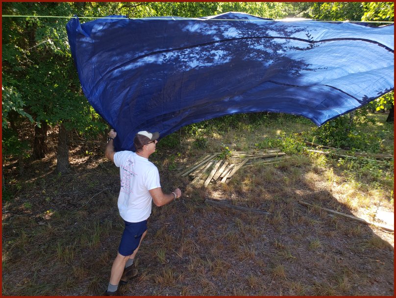 peak heat of the day. And, like last week, we put Jason's big blue tarp over the structure via tall 2x4's that we temporarily