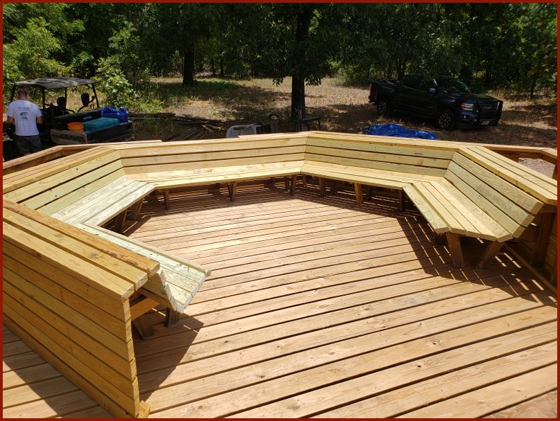 the very important perimeter boards for the benches. We also screwed into place the first row of boards that will become the back of the