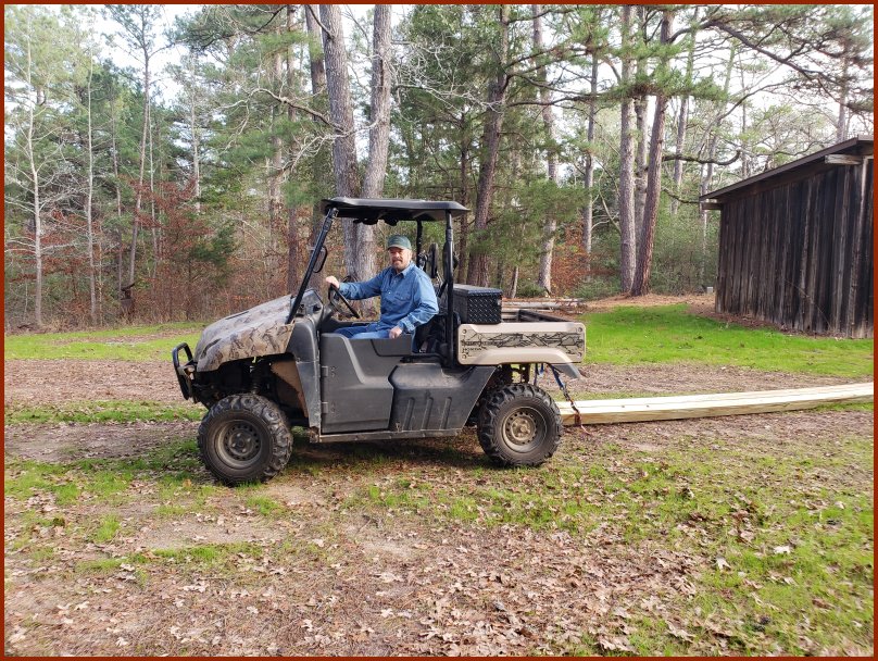 We use our Honda MUV (side-by-side) to carry lumber from the Compound area up to the Brushyhenge worksite. If the boards