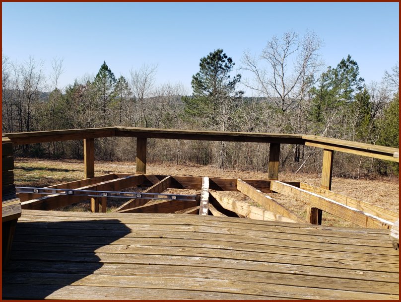 supporting boards underneath. Some of those support boards (especially the 4x6's) have a few rotted areas on top, so we will buy an