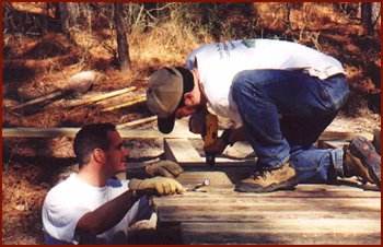 David & myself screwing down the five foot long 2x6 planks to the 20 foot long 6x6