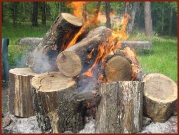 The amount of wood on that fire can only mean one thing...dad built it. He loves a big campfire!