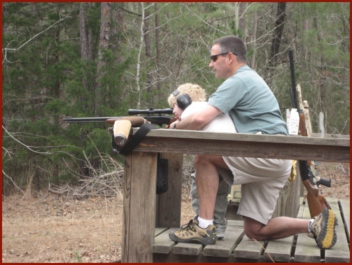 David helping Barrett shoot the .22 rifle