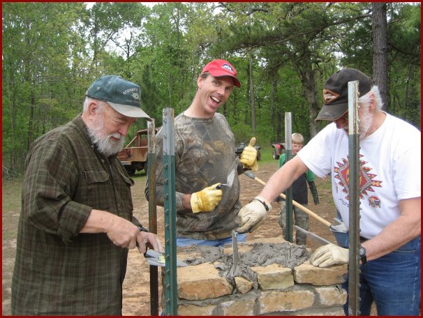 Preparing the mortar for the next layer of rock.