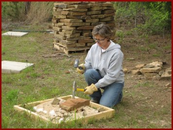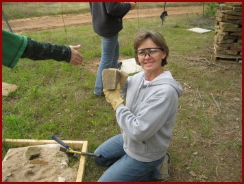 Cutting rocks into 90-degree corners is a very important (and labor intensive) task. Mykala became skilled