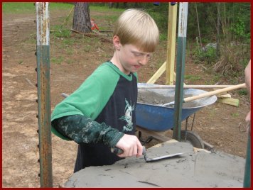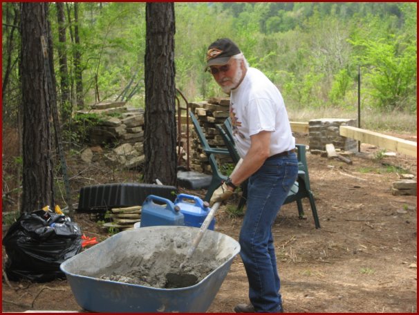 Chuck, mixing another batch of mortar. Two bags of mortar is required for just three layers of rock in one
