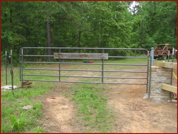 We saved the old "Brushy Land" sign and put it on the new gate.