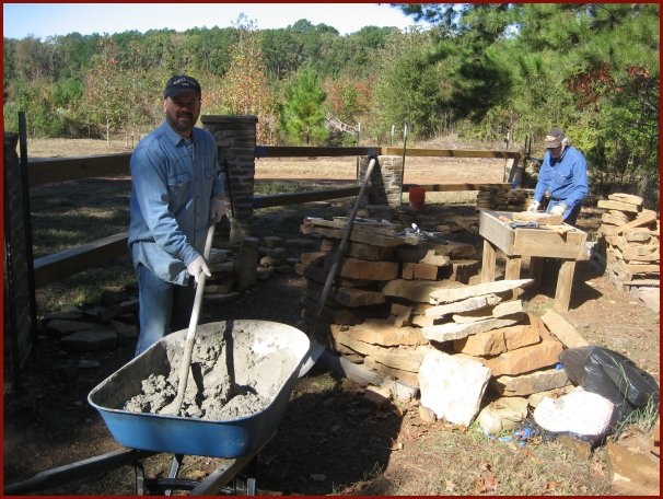 Me mixing mortar. We do this quite a bit. The entire project (all 8 columns) will take around 101 bags of mortar.