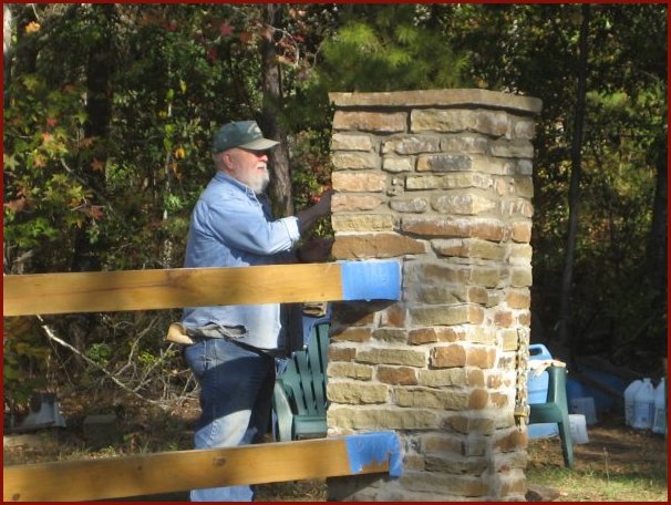 Dad touching up the first column to the left of the gate.