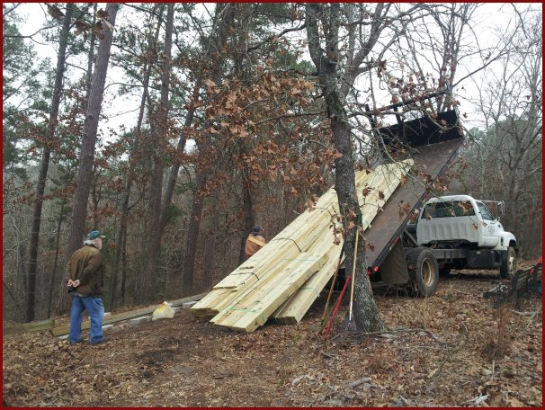 Having the lumber delivered. The driver got stuck in the sand. Here's a short video.