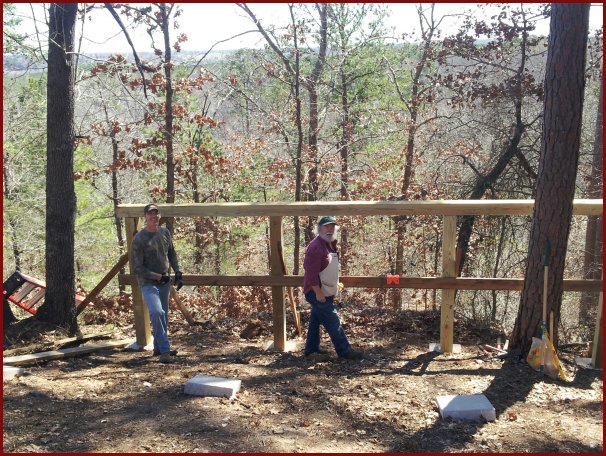 Jason & Dad near the downhill supports. We used 6x6 treated pine posts and beams. It's rare for Dad to build a