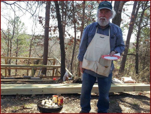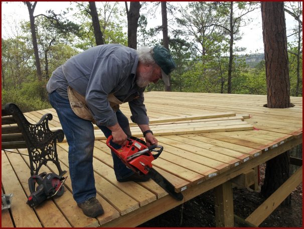 Dad doing some of that fancy chainsaw carpentry of his. He makes a cleaner cut with a chainsaw than most