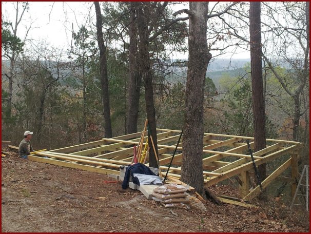 hill. It faces largely East, providing a nice view of the rising Sun. The platform was built primarily by Dad,