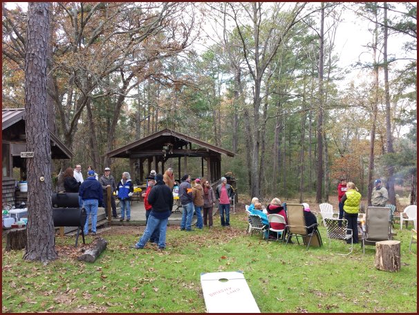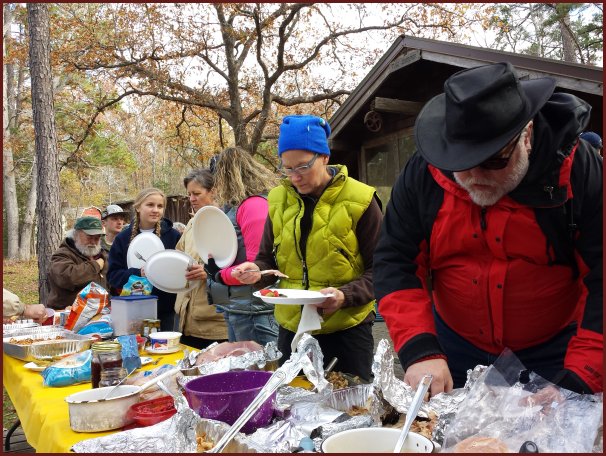 Roughly 40 people enjoyed a cool (but not freezing cold) Turkey Day in the woods this year. The food was