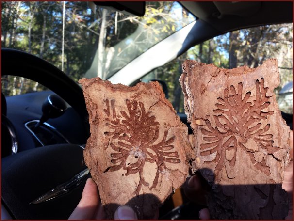 The beautiful engravings on the inside of these pine bark chips were most likely created by the