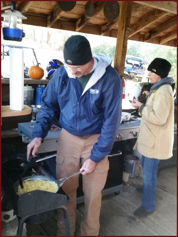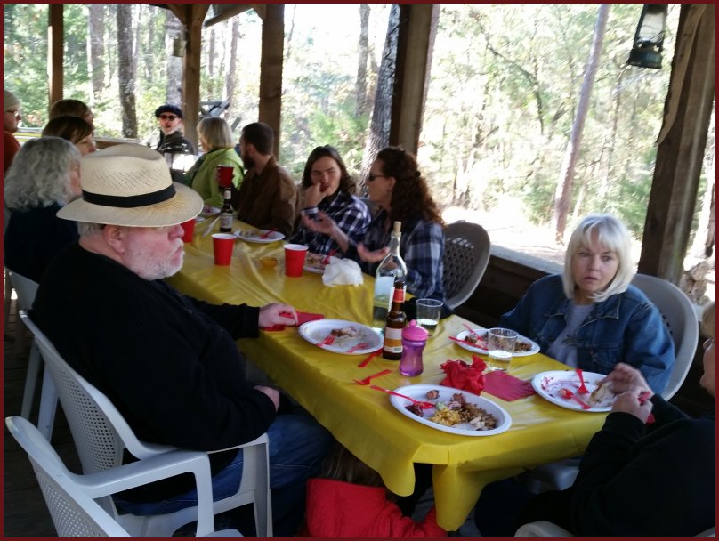 We had perfect Fall weather for our annual Thanksgiving celebration in the woods. Good friends eating