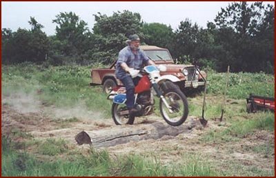 Here's dad testing out a smaller jump we made using a partially buried log.
