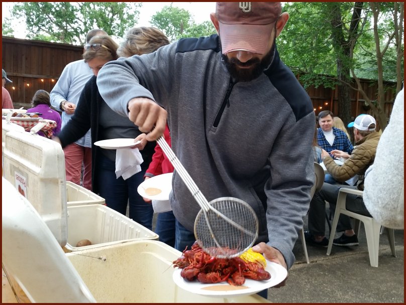 cooking the crawfish, corn, and potatoes! And to everyone who brought a food item (Mykala, Fran, The Dowds, etc). It all