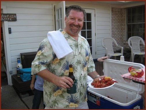 That's Gary Krumbholz with a plateful of mudbugs. It's always nice to see Gary at the Boil, and this