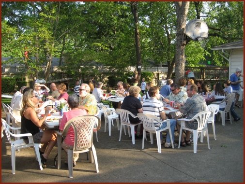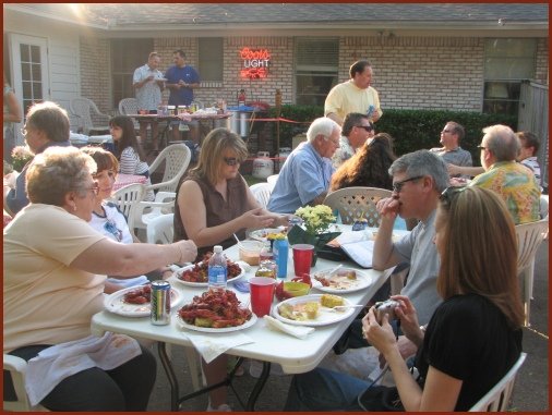 roughly 45 adults and 15 kids. Brian did another bang up job cooking the crawfish. There were lots of old