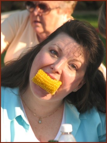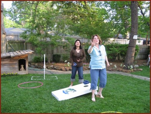 Corn Hole was a big hit with the kids and the adults. Debbie is indicating that she got all four