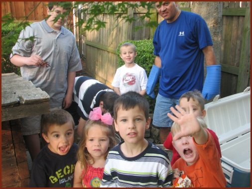 Some of the kids "helped" Brian prepare the crawfish