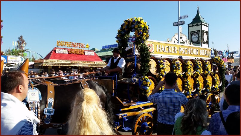 This very cool Hacker Pschorr horse-drawn wagon periodically drove through the crowd.