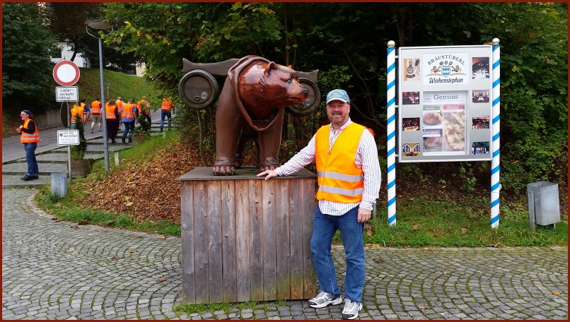 favorite beer - the Weihenstephaner Hefeweissbier. I'm wearing that handsome orange vest because I was touring the
