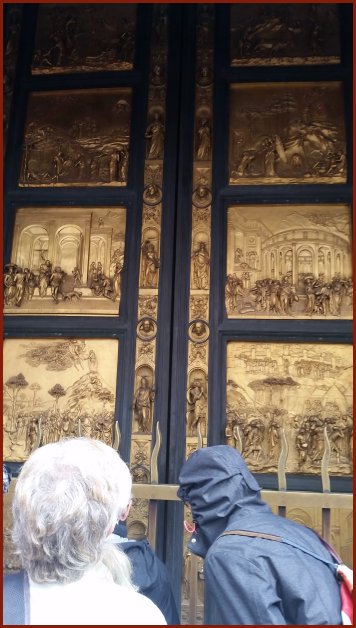 the equally impressive bronze doors of the Florence Baptistery (right) created by Brunellschi's artistic rival,