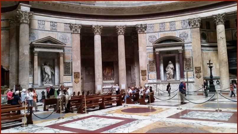 Inside the Pantheon, my favorite Ancient Roman site. Huge granite columns outside, beautiful marble columns