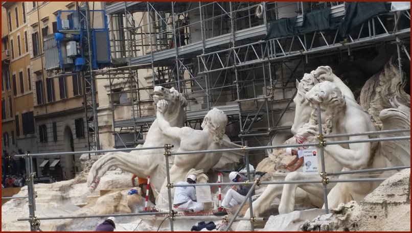 The Trevi Fountain was closed for restoration. Legend has it that if you throw a coin into the fountain over your